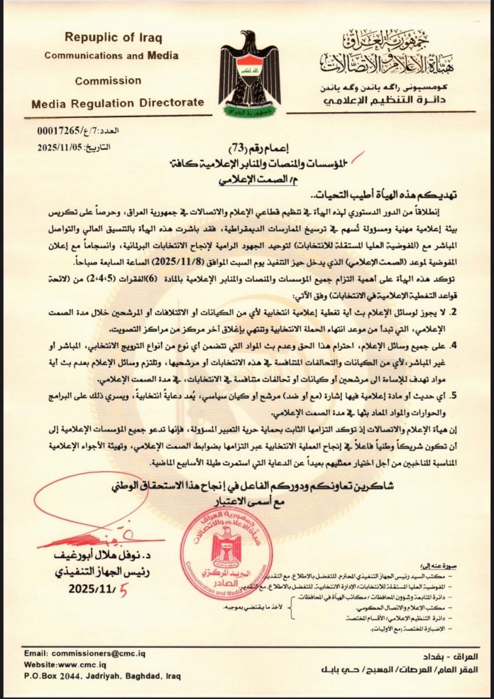 ذات صلة أيمن حسين: سنلعب بروح قتالية للتأهل إلى كأس العالم 2026 رياضة March 21, 2026 أسراب المسيّرات في بغداد.. اختبار معقد لقدرات منظومة “سي رام” الأمريكية HeadLines March 17, 2026 أجتماعية February 18, 2026 جمع أيمن حسين: سنلعب بروح قتالية للتأهل إلى كأس العالم 2026 رياضة March 21, 2026 أكد نجم المنتخب الوطني الكابتن، أيمن حسين، اليوم السبت،... Read more أسراب المسيّرات في بغداد.. اختبار معقد لقدرات منظومة “سي رام” الأمريكية HeadLines March 17, 2026 في تصعيد عسكري خطير، شهدت العاصمة العراقية بغداد، مساء... Read more أجتماعية February 18, 2026 هيئة الاعلام والاتصالات توجه وسائل الاعلام بعدم استضافة سلام... Read more نصائح للإفطار والسحور للحفاظ على النشاط والطاقة HeadLines February 18, 2026 يقدّم شهر رمضان المبارك فرصة للتطهير الروحي والنفسي والجسدي،... Read more بعبارة مغلق احتجاجًا على رفع الرسوم الكمركية.. HeadLines February 8, 2026 تجار #بغداد يتظاهرون ويغلقون محلاتهم Read more HeadLines هيئة الاعلام والاتصالات توجه المؤسسات الإعلامية بالالتزام بالصمت الانتخابي November 6, 2025 admin adminhttp://mawqif-media.net/ar Previous articleالعراق يستحق الافضل – 11 تشرين الثانيNext articleأسود الرافدين الى الملحق العالمي